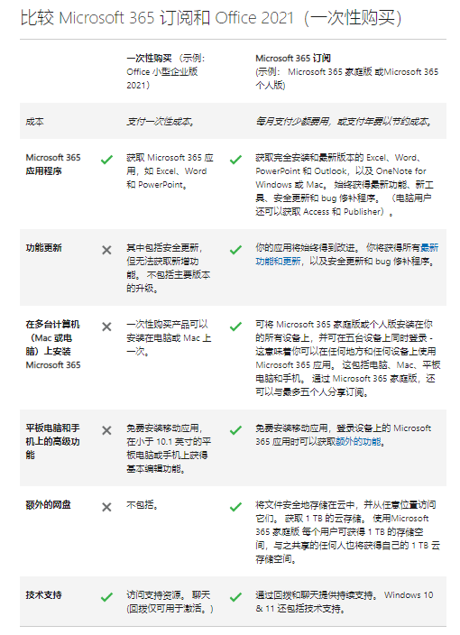 【Office 2021(一次性购买)和 Microsoft 365(订阅)有什么不同?】